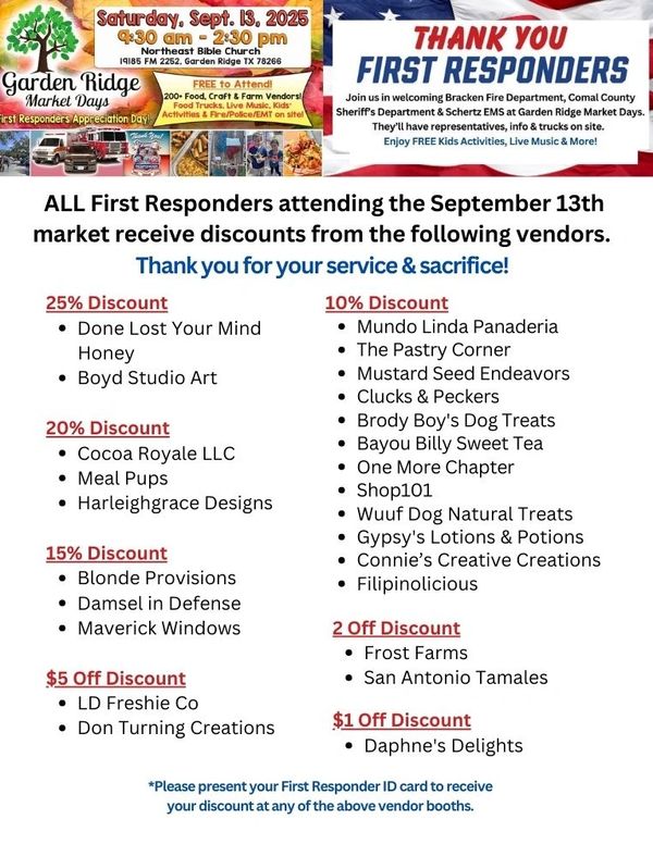 Thank you to everyone who joined us for our September 2025 - First Responder Appreciation Market! We had a great day including: