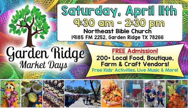 *FREE TO ATTEND* Join us at the largest pop-up market in the San Antonio area! GARDEN RIDGE MARKET DAYS - Mother's Day Event - May 9, 2026 from 9:30am - 2:30pm at Northeast Bible Church (NE San Antonio) will feature: